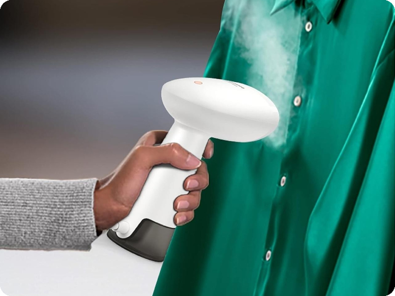 Ręczny steamer jest lekki i wygodny w użytkowaniu dzięki ergonomicznej i kompaktowej konstrukcji. Wystarczy nacisnąć przycisk, aby łatwo usunąć zagniecenia za pomocą ciągłego strumienia pary. Dzięki steamerowi deska do prasowania nie jest już potrzebna, co sprawia, że prasowanie staje się łatwe i bezproblemowe. Steamer jest bezpieczny dla wszystkich tkanin. To doskonałe rozwiązanie w przypadku delikatnych tkanin, takich jak jedwab.