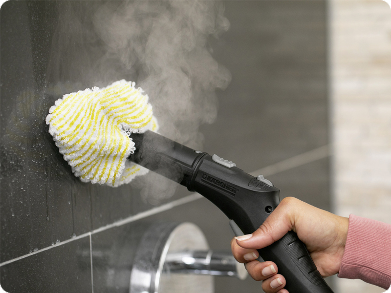 Parownica została zaprojektowana z myślą o wygodzie użytkownika — na obudowie znajduje się schowek na kabel oraz miejsce na przechowywanie akcesoriów, co usprawnia organizację. Dysza podłogowa EasyFix posiada elastyczny przegub oraz system lamelowy, a szmatka mocowana jest na rzep — to pozwala na ergonomiczne sprzątanie bez kontaktu z brudem. Zbiornik na wodę jest wyjmowany i można go napełniać w trakcie pracy, co eliminuje przerwy i zwiększa wydajność. Parownica posiada blokadę bezpieczeństwa zapobiegającą przypadkowemu uruchomieniu przez dzieci oraz zawór bezpieczeństwa, co podnosi komfort i bezpieczeństwo użytkowania. Dodatkowo, urządzenie oferuje praktyczne miejsce „parkingowe” dla głowicy podłogowej podczas przerw — pozwala na wygodne odstawienie w trakcie pracy.