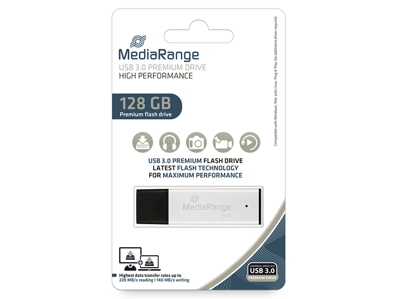 Komputery i podzespołyPodzespołyPamięciPendrivePendrive MediaRange 128 GB USB 3.0 MR1902