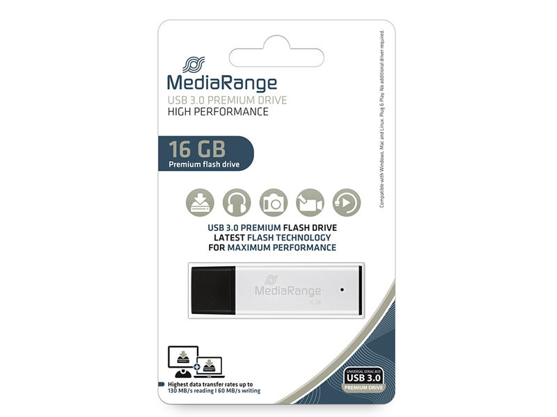 Pendrive marki MediaRange wyposażony został w interfejs USB 3.0, co pozwoliło na komfortową prędkości pracy. Pendrive zapewnia prędkości odczytu 130 MB/s oraz prędkości zapisu do 60 MB/s, a dzięki pojemności 16 GB masz możliwość przechowywania swoich najważniejszych plików.