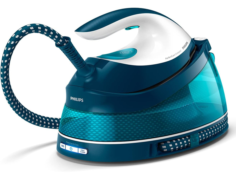 Wbudowany system usuwania kamienia Smart Calc Clean przypomina, kiedy należy odkamienić urządzenie. Dołączony pojemnik ułatwia wykonanie tego procesu. Dzięki temu kupowanie dodatkowych wkładów nie jest konieczne. Oszczędność energii dzięki trybowi ECO - takie same rezultaty przy oszczędności energii. Tryb ECO zmniejsza pobór mocy podczas prasowania tkanin wymagających mniejszej ilości pary.