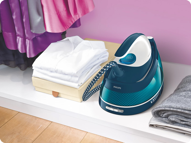 Silny, ciągły strumień pary z łatwością poradzi sobie nawet z najgrubszymi tkaninami. Oporne zagniecenia znikną pod wpływem silnego uderzenia pary. Ta dodatkowa pomoc przydaje się podczas odświeżenia strojów i zasłon przez ich prasowanie w pionie. Jeśli żelazko z generatorem pary nie jest używane przez kilka minut, funkcja automatycznego wyłączania, samoczynnie wyłączy urządzenie. Pozwala to zaoszczędzić energię i zapewnia spokój ducha odnośnie bezpieczeństwa.
