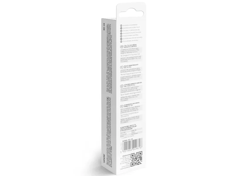 RC-23 nie wymaga żadnej konfiguracji – wystarczy zainstalować baterie (brak w zestwie), by od razu móc sterować telewizorem. Z myślą o współczesnych potrzebach użytkowników, pilot RC-23 został wyposażony w przyciski skrótów do popularnych serwisów, takich jak Netflix czy Amazon Prime. Jedno kliknięcie wystarczy, by uruchomić ulubione aplikacje i rozpocząć seans. RC-23 został wykonany z materiałów pochodzących z recyklingu, a jego opakowanie to ekologiczny, biodegradowalny karton. Staramy się ograniczać ilość plastiku wszędzie tam, gdzie to możliwe – również w produktach codziennego użytku.