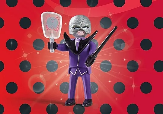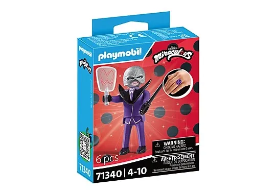 Poznaj ciemną stronę świata Miraculum dzięki zestawowi PLAYMOBIL Miraculum: Władca Ciem! Największy przeciwnik Biedronki i Czarnego Kota, Władca Ciem, przenosi się jako figurka do świata zabawy. Figurką można bawić się odgrywając rolę ojca Adriena, Gabriela Agreste, lub superzłoczyńcy Władcy Ciem z maską. Oprócz figurki Władcy Ciem zestaw zawiera pierścionek dla dzieci, który możne stać się również zawieszką do bransoletek z innych zestawów Miraculum. Wciel się w rolę Władcy Ciem i staw czoła Biedronce i Czarnemu Kotowi.
