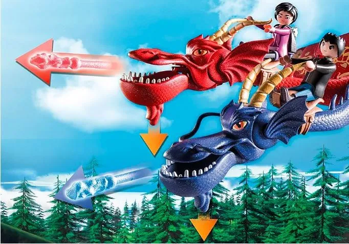 1300 lat po wydarzeniach z Jak Wytresować smoka, smoki są dziś tylko legendą dla współczesnego świata. Kiedy anomalia geologiczna wywołuje olbrzymi, milowy wybuch na powierzchni Ziemi, naukowcy z całego świata gromadzą się w nowym ośrodku badawczym, aby zbadać tajemnicze zjawisko. Wkrótce grupa dzieci, które zostały zabrane przez rodziców na miejsce, ujawnia prawdę o smokach i ich kryjówkach tajemnicę, którą muszą zachować dla siebie, aby chronić to, co odkryli. Jun jest mistykiem New Age. Nie ma mitu czy zaklęcia, w które by nie wierzyła. To kontrastuje z jej matką, która jest nie-nonsense reżyserką Icaris. Jun ma bystre poczucie humoru i, podobnie jak Tom, ma dziwną żyłkę. To spełnienie marzeń, gdy odkrywa smoki, ponieważ oznacza to, że każda magiczna legenda musi być prawdziwa! Juns Dragon Wu & Wei to chiński smok inspirowany dwiema osobowościami agresywną i cichą. Zawsze przyciągają się nawzajem, by przewodzić. PLAYMOBIL Dragon Wu & Wei jest wyposażony w ruchome nogi oraz głowę i szyję. Duże skrzydła można obracać we wszystkich kierunkach. Z siodłami Jun i Eugene mogą jeździć na smoku. Z każdej z dwóch głów smoka można wystrzelić Lodową Strzałę. Aby włożyć strzałkę, usta otwierają się, pociągając pręt podbródka, a następnie ponownie zamykają. Strzałka może być również wyzwalana przez pociągnięcie podbródka.