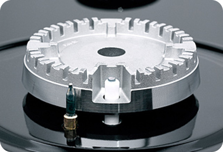 13,0 cm palnik WOK (2,8 kW) 4,0 cm palnik pomocniczy (1,0 kW)- 1 szt. 6,5 cm palnik średni (1,8 kW) - 2 szt. |