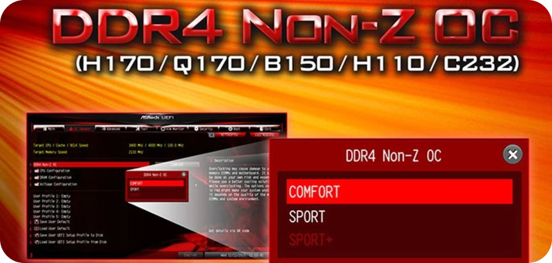Podkręcanie pamięci już nie jest ograniczone tylko dla chipsetów Z170. Dzięki funkcji ASRock DDR4 Non-Z OC użytkownicy korzystający z płyt głównych opartych na chipsetach H170/Q170/B150/H110/C232 i określonych kości pamięci takich jak Kingston lub Samsung, mogą w łatwy sposób zwiększyć taktowanie oraz obniżyć timingi!