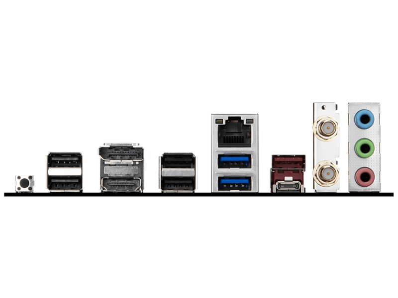DisplayPort - 1 szt. Audio jack - 3 szt. Flash BIOS Button - 1 szt. USB 2.0 - 4 szt. Złącze anteny Wi-Fi - 2 szt. HDMI - 1 szt. USB 3.2 Gen. 1 - 2 szt. RJ45 (LAN) 1 Gbps - 1 szt. USB 3.2 Gen. 2 Type-C - 1 szt. USB 3.2 Gen. 2 - 1 szt. |