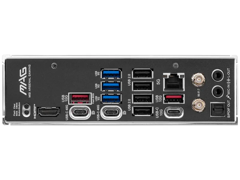 USB 4 Type-C - 2 szt. USB 2.0 - 4 szt. USB 3.2 Gen. 1 - 3 szt. HDMI - 1 szt. Złącze anteny Wi-Fi - 2 szt. USB 3.2 Gen. 2 - 2 szt. Audio jack - 2 szt. S/PDIF - 1 szt. |