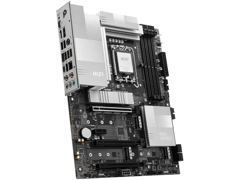 Płyty główne z serii PRO Z890-P WIFI oferują prosty design z harmonijną, srebrną kolorystyką, która idealnie pasuje zarówno do białych, jak i czarnych zestawów komputerowych. Płyty te charakteryzują się implementacją wielu wyjątkowych funkcji MSI, w tym łączności Wi-Fi 7 z systemem EZ Antenna, sieci 5G LAN, złączy Thunderbolt 4, interfejsu PCIe 5.0 M.2 z rozwiązaniem chłodzenia napędów M.2, EZ M.2 Shield Frozr II oraz dodatkowym zasilaniem PCIe, dzięki czemu są one przygotowane do obsługi najnowszych procesorów z serii Intel® Core™ Ultra.