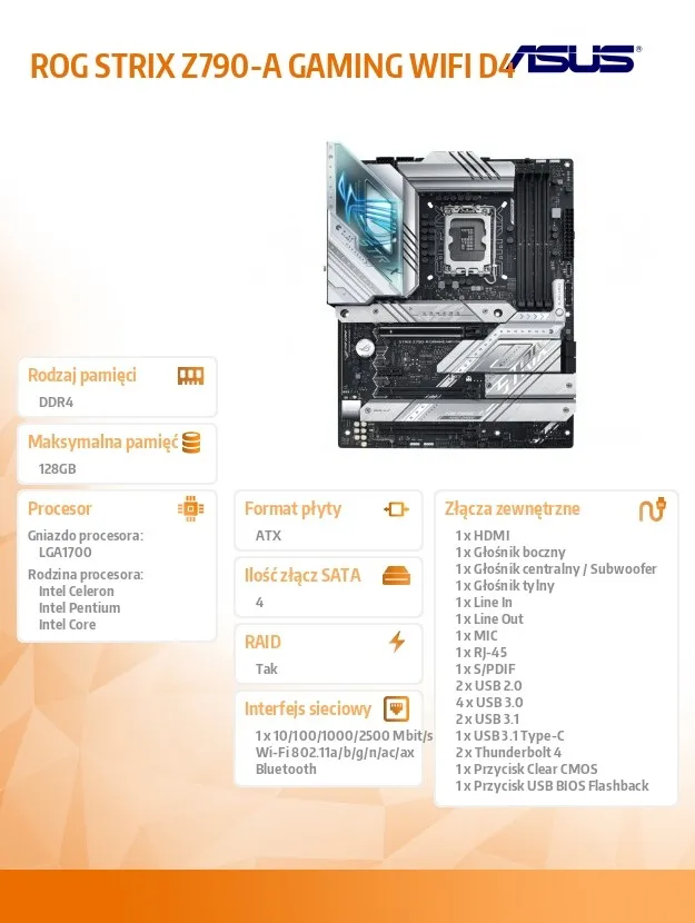Komputery i podzespołyPodzespołyPłyty głównePłyta główna ROG STRIX Z790-A GAMING WIFI 4DDR4 HDMI/DP ATX
