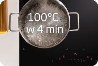 Przed rozpoczęciem smażenia czy gotowania często trzeba rozgrzać patelnię lub garnek. W płytach indukcyjnych Amica zastosowaliśmy funkcję Szybki nagrzew, która w krótkim czasie samoczynnie rozgrzeje naczynie, a następnie dostosuje moc grzania do ustawionego przez Ciebie poziomu.