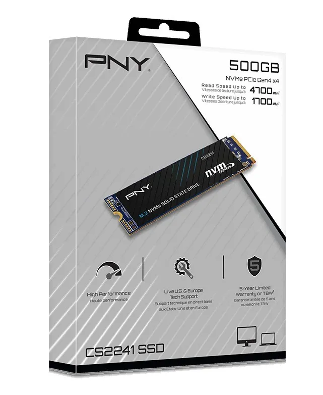 Dysk SSD PNY CS2241 M.2 NVMe Gen4 x4 to doskonały wybór do zwiększenia wydajności w komputerze stacjonarnym lub laptopie z obsługą NVMe Gen4. Ciesz się krótszym czasem uruchamiania, szybszym uruchamianiem aplikacji i lepszą ogólną wydajnością systemu dzięki technologii CS2241 Gen4. Zrób więcej w krótszym czasie dzięki NVMe Gen4 x4; Uruchamiaj, wyłączaj i ładuj aplikacje do 8 razy szybciej w porównaniu z dyskami SSD opartymi na SATA. Zaprojektowany z myślą o zapewnieniu wymaganej wydajności i bez ruchomych części, PNY CS2241 jest bardzo trwały, mniej podatny na awarie i obsługuje 5-letnią ograniczoną gwarancję lub TBW.