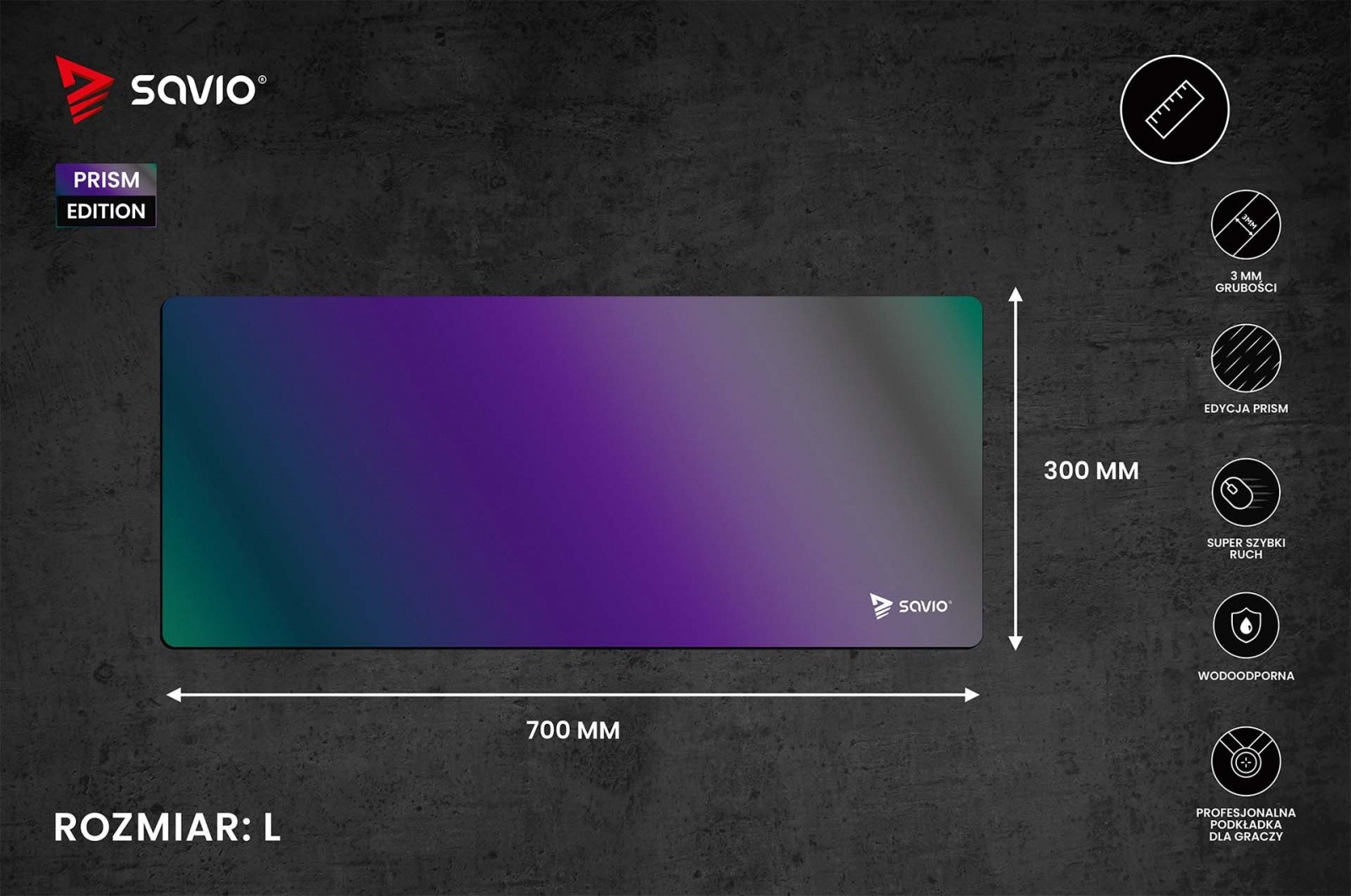 Podkładka 700x300x3mm SS Prism Edition L SAVIO