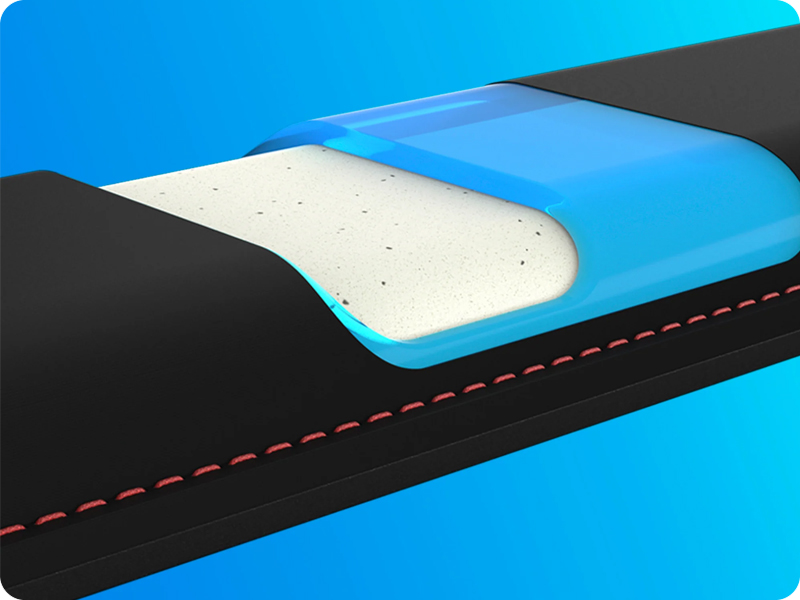 Wnętrze HyperX Wrist Rest Compact 60 / 65 wypełnia pianka z pamięcią kształtu połączona z chłodzącym żelem. Takie połączenie dopasowuje się do nadgarstków i zapewnia przyjemny efekt chłodu. Nawet podczas intensywnego grania podpórka pomaga utrzymać komfort. Niestrzępiące się szwy zwiększają trwałość i estetykę produktu. To niezawodne wsparcie zaprojektowane, aby sprostać ostrym gamingowym wyzwaniom.
