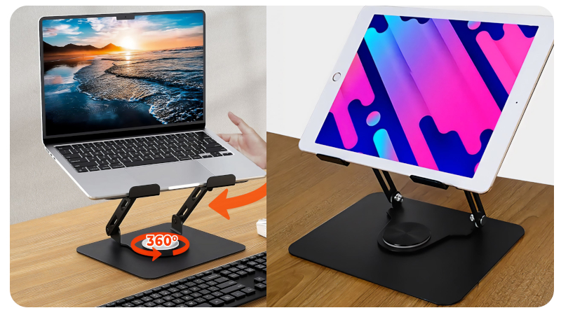 Z podstawką Media-Tech LAPTOP STAND ROTO zyskujesz nie tylko stabilne oparcie dla swojego laptopa, ale też pełną mobilność. Obrotowa platforma 360° pozwala błyskawicznie zmienić kąt widzenia – wystarczy lekki ruch, by pokazać ekran współpracownikom lub wygodnie obejrzeć ulubiony film. To idealne rozwiązanie do pracy, nauki i rozrywki, bez potrzeby przesuwania całego urządzenia. Funkcjonalność, wygoda i styl – wszystko w jednym akcesorium.