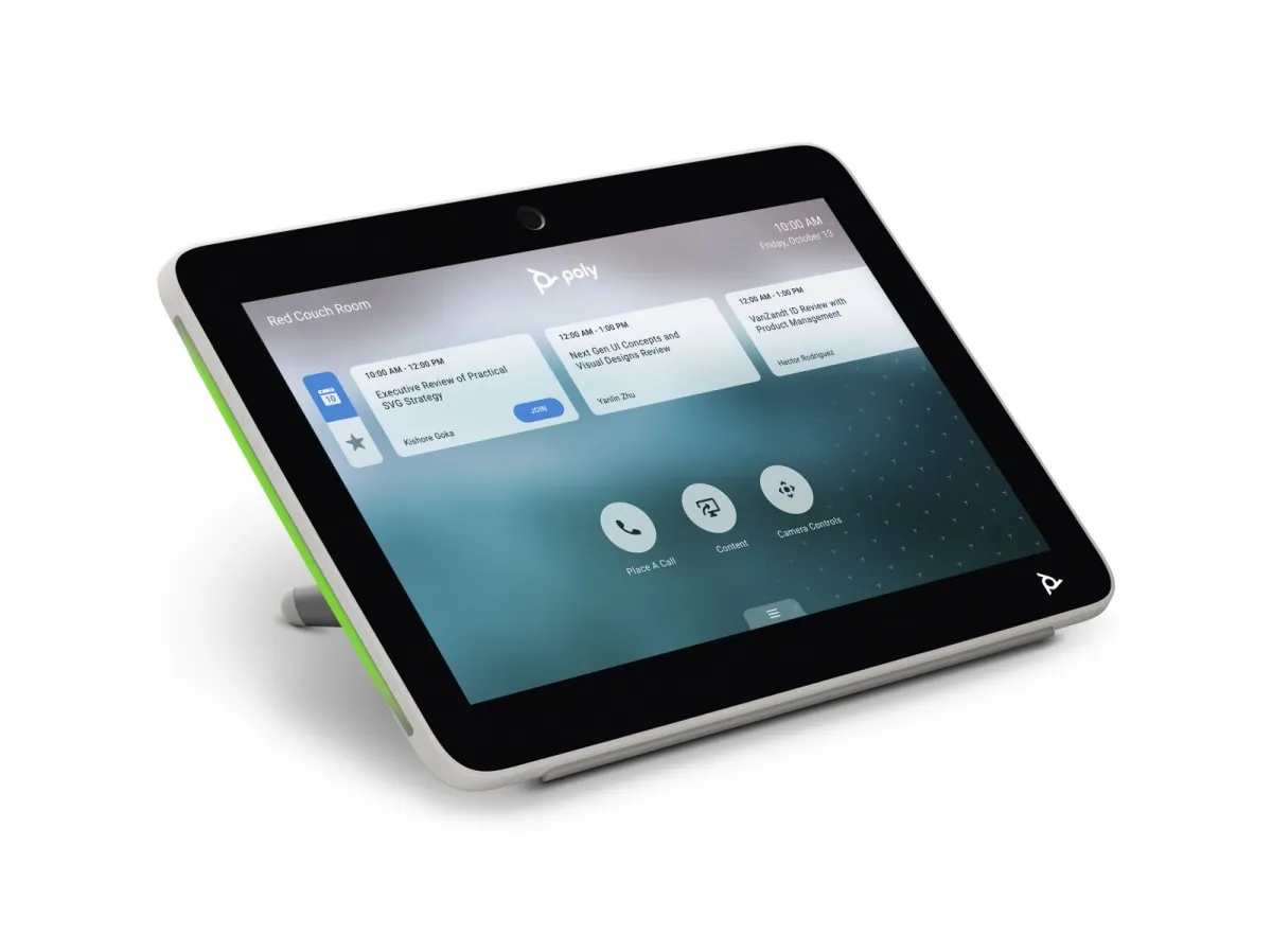 Dotykowy panel sterowania Poly TC10 zwiększa produktywność spotkań i umożliwia użytkownikom łatwe planowanie przestrzeni roboczych i sal konferencyjnych, gdy pracownicy znajdą się w elastycznym środowisku pracy. Kontroluj rozmowy wideo w pokoju i udostępniaj treści jednym dotknięciem. Możesz też użyć go poza pokojem, aby sprawdzić wolne miejsca i zaplanować dowolne miejsce, które można zarezerwować, bez przeszkadzania. Intuicyjne sterowanie i wielokolorowe diody LED ułatwiają dostrzeżenie szczegółów spotkania i dostrzeżenie otwartych pomieszczeń z daleka. Niezależnie od tego, czy zamontujesz go na ścianie, na szkle, czy umieścisz na stole za pomocą elastycznej, ustawianej pod różnymi kątami podstawy, masz sekret prawdziwej produktywności podczas spotkań.