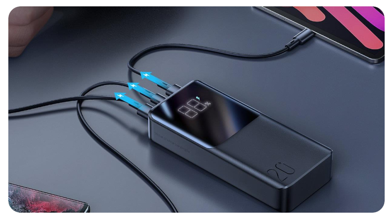 Powerbank JoyRoom z imponującą pojemnością 20 000 mAh to niezawodne wsparcie wszędzie tam, gdzie dostęp do gniazdka jest ograniczony. Pozwala na wielokrotne ładowanie smartfona, tabletu czy innych urządzeń mobilnych, dzięki czemu możesz swobodnie pracować, podróżować i korzystać z ulubionych aplikacji bez obaw o poziom baterii. To idealne rozwiązanie dla osób aktywnych i wymagających – szczególnie tych, którzy na co dzień korzystają z kilku sprzętów jednocześnie. Solidna wydajność zamknięta w kompaktowej formie sprawia, że zawsze masz zapas energii pod ręką.