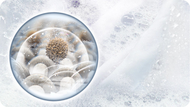 Oszczędź ogromną ilość energii, używając technologii Eco Bubble™, by duże prania puszczać w niskich temperaturach. Bąbelki aktywują detergent, który szybko wnika w materiał i łatwo usuwa brud – nawet w chłodnej wodzie (15°C) .Woda, powietrze i detergent łączą się jeszcze przed rozpoczęciem cyklu prania tworząc aktywną pianę. Piana wnika w tkaninę rozpuszczając zanieczyszczenia równocześnie oszczędzając energię chroniąc tkaninę i jej kolor.