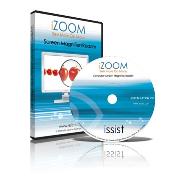 iZoom to oprogramowanie udźwiękawiające oraz powiększające umożliwiające zmianę różnych aspektów ekranu takich jak wygląd, rozmiar czcionki, tła, wskaźnika myszy, aby uprościć obsługę komputera osobom słabowidzącym. Tego typu programy pomagają osobom niewidomym i słabowidzącym obsłużyć komputer. Użytkownicy słabowidzący mogą wybrać program, który który powiększa obraz i udźwiękawia komputer. Programy takie mogą powiększać obraz (nawet kilkudziesięciokrotnie), zwiększać jasność czy pokazywać obraz w sztucznych kontrastowych kolorach, a także odczytywać zawartość ekranu.