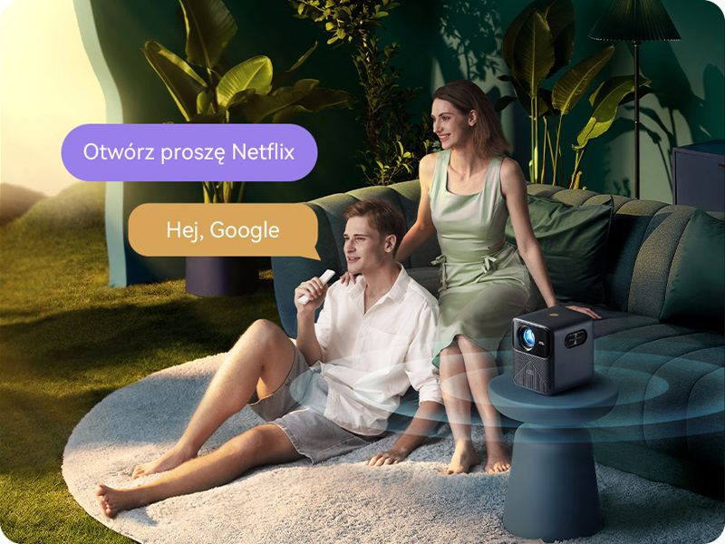 Projektor Wanbo Mozart 1 Pro oferuje wygodne sterowanie głosowe. Dzięki kompatybilności z Asystentem Google, możesz sterować projektorem głosem, bez konieczności używania pilota. Powiedz "Hej Google, włącz projektor" lub "Hej Google, zwiększ głośność" i ciesz się komfortem sterowania.