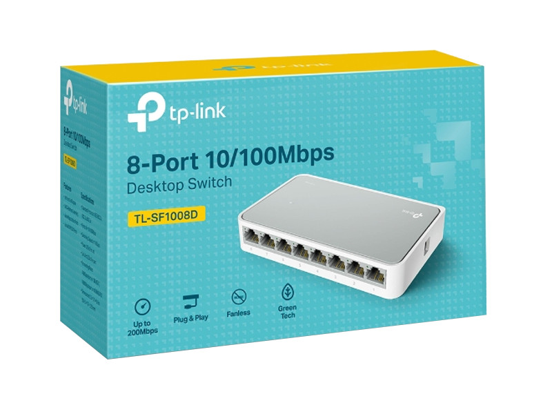 Przełącznik TL-SF1008D posiada 8 portów RJ45 Fast Ethernet 10/100Mb/s z funkcją automatycznej negocjacji szybkości połączeń. Dzięki funkcji MDI/MDIX nie ma konieczności użycia krosowanych kabli. Architektura non-blocking umożliwia przekazywanie i filtrowanie pakietów z pełną prędkością przy zachowaniu maksymalnej przepustowości. Ramki jumbo 10K powodują wzrost wydajności transferu dużych ilości danych. Obsługa kontroli przepustowości IEEE802.3x dla transmisji w pełnym dupleksie oraz funkcji backpressure dla transmisji w półdupleksie zapewnia płynny ruch sieciowy i niezawodną transmisję danych.
