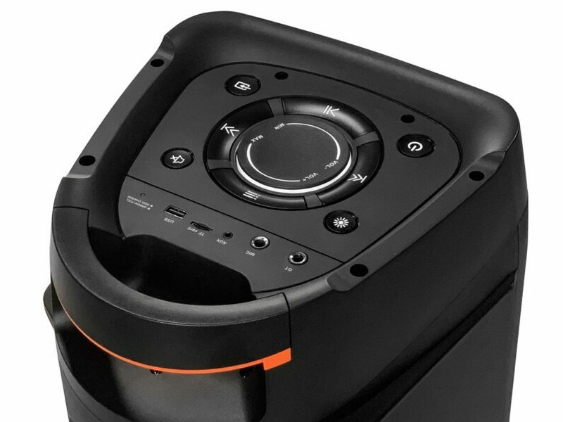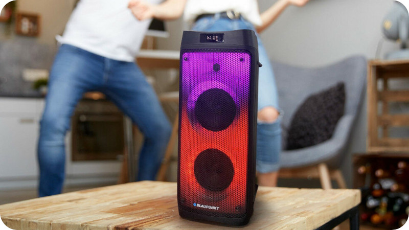 W głośniku Blaupunkt typu „PartyBox” nie może zabraknąć takiej funkcji jak karaoke. W zestawie znaleźć można dwa mikrofony bezprzewodowe, które tuż po uruchomieniu automatycznie parują się z głośnikiem. Podczas korzystania z funkcji karaoke dostępna jest również opcja priorytetu mikrofonu. Na głownym panelu znajdziemy również dwa gniazda przeznaczone dla mikrofonów przewodowych, które nie są elementem zestawu.