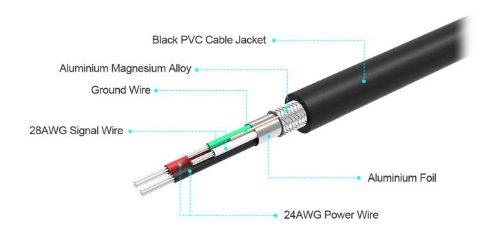 Przewód przystosowano do szybkiego ładowania, może bowiem przenosić prąd o wartości do 2,4A. To ważne, bo cóż nam po dobrej ładowarce lub po szybkim powerbanku, skoro ograniczeniem będzie najtańszy kabel. Przewód jest kompatybilny z USB 2.0. Wykonano go z czystej miedzi i użyto podwójnego ekranowania, dzięki temu zapewnia stabilny i szybki przesył danych podczas transferu plików lub synchronizacji.