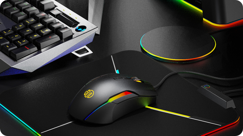 Podświetlenie RGB widoczne w wielu strefach myszy nadaje urządzeniu prawdziwie gamingowego charakteru. Możesz wybrać jeden z 10 trybów kolorowego podświetlenia Przenieś się na wyższy poziom i nadaj wyjątkowego stylu swojemu centrum dowodzenia. Mysz Inphic to nie tylko niezawodna broń podczas rozgrywek, ale też doskonała ozdoba biurka.