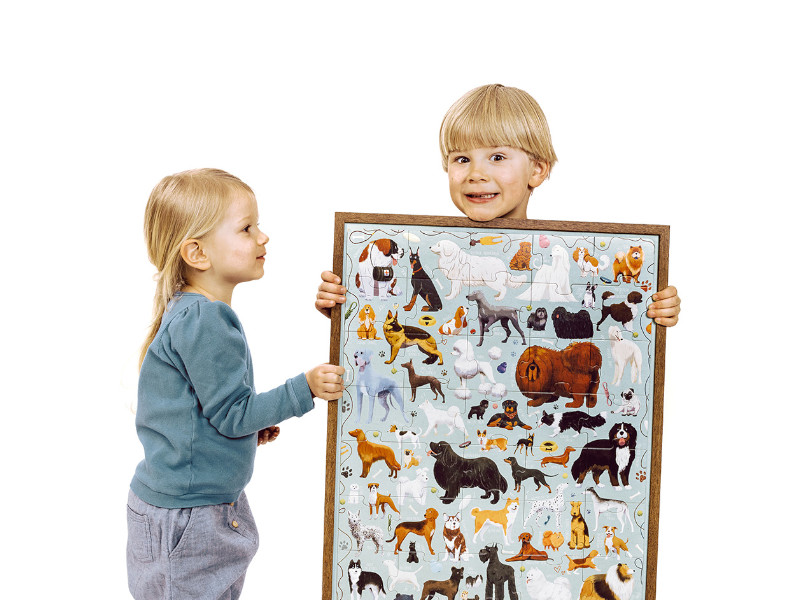 Dziecko rozwija się od najwcześniejszych etapów życia, dlatego warto zadbać o jego rozwój w najlepszy sposób. Pomóc mogą w tym Puzzle CzuCzu, które przeznaczone są dla dzieci, które ukończyły 3 latka. Zestaw składa się z 40 elementów, które wspomogą rozwój manualny Twojego dziecka. Zabawa polega na dopasowaniu do siebie elementów tworzących wspólnie różne rasy psów. Zademonstruj maluchowi, które kształty pasują do siebie oraz opowiadaj, co znajduje się na ilustracjach. Bawcie się wspólnie przez długie godziny bez przerwy na nudę.
