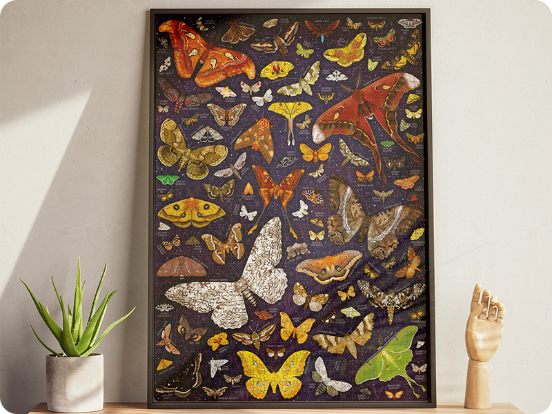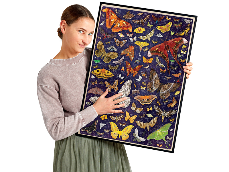 Przepiękne ćmy zleciały się, aby stworzyć wyjątkowo klimatyczną ilustrację. Przed Wami najbardziej fascynujące gatunki nocnych owadów. Czy znaliście je wszystkie? Ułóżcie duże, 1000-elementowe puzzle, aby zrelaksować się i wprowadzić w dobry i magiczny nastrój. Odpocznij i ciesz się czasem dla siebie.