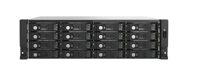 Korzystając z serwera QNAP Enterprise i NAS typu all-flash z systemem QuTS hero, sparowanego z wieloma modelami JBOD TL-R1600PES-RP, można uzyskać zarówno niezwykle wysoką wydajność, jak i ogromną pojemność. Model TL-R1600PES-RP obsługuje dyski twarde SATA, zapewniając większy wybór dysków dużej pojemności. Jest to idealna konfiguracja dla przedsiębiorstw, instytucji naukowo-badawczych i firm produkujących media, które wymagają pamięci masowej o dużej pojemności do tworzenia kopii zapasowych lub przechowywania maszyn wirtualnych, kontenerów i tego, co jest produkowane/generowane przez ich wysokowydajny NAS.