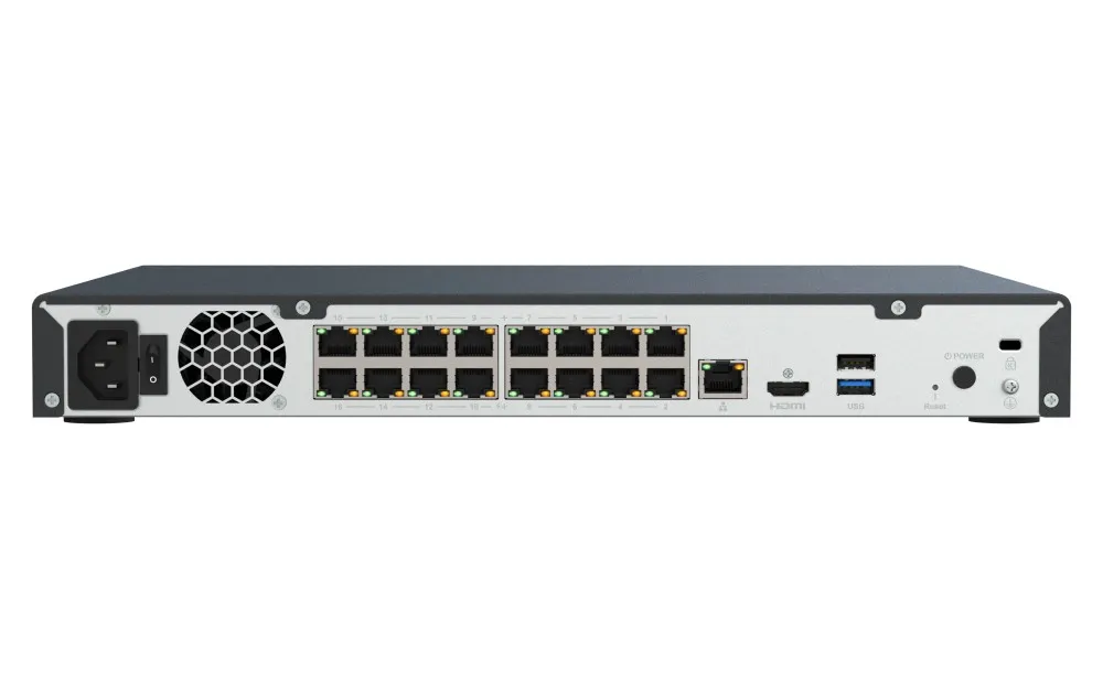 16 portów PoE+ bezpośrednio zasila kamery IP, przesyłając zasilanie i dane za pomocą jednego kabla Ethernet, eliminując potrzebę stosowania skomplikowanego okablowania.