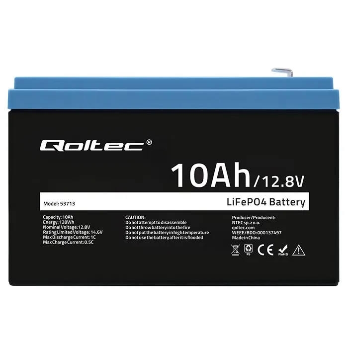 Qoltec Akumulator LiFePO4 litowo-żelazowo-fosforanowy | 12.8V | 10Ah | 128Wh | BMS