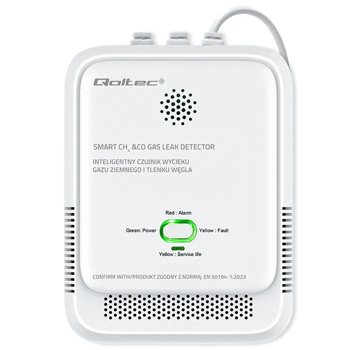 Qoltec Czujnik wycieku gazu i tlenku węgla | alarm 85dB | LED