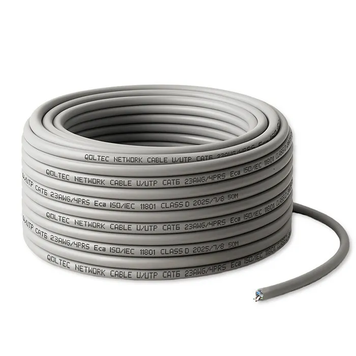 Kabel UTP CAT6 jednożyłowego drutu miedzianego o średnicy 0.52 mm marki Qoltec o długości 50m to niezawodne rozwiązanie do transmisji danych w sieciach Gigabit Ethernet. Przeznaczony do obsługi prędkości do 1 Gb/s i częstotliwości 250 MHz, gwarantuje płynną i stabilną komunikację między urządzeniami sieciowymi.