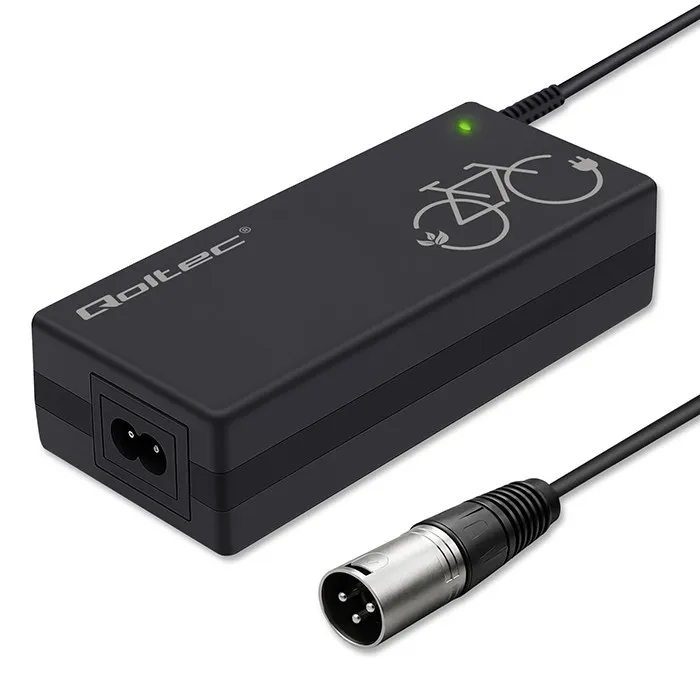 Qoltec Ładowarka do roweru elektrycznego 36V | 42V | 2A | 3P XLR-18mm + kabel zasilający
