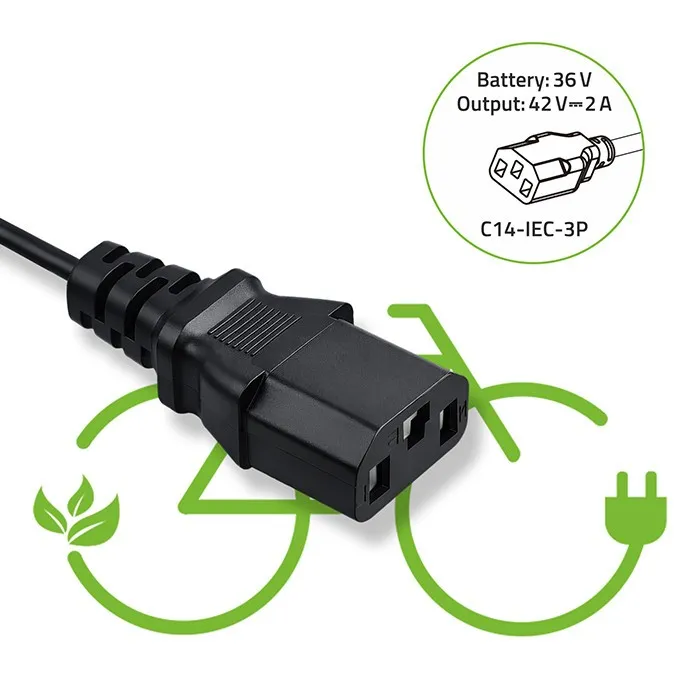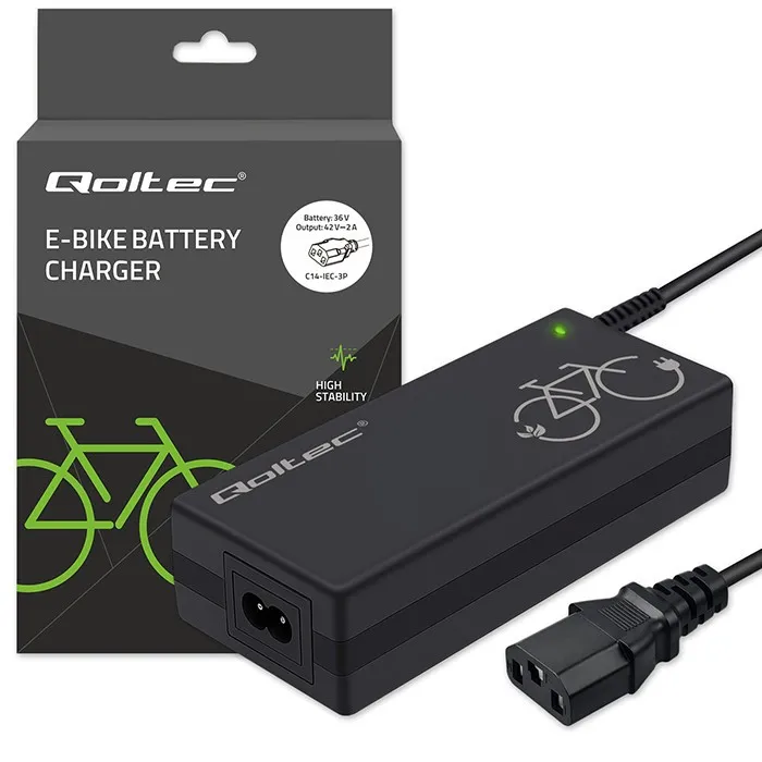Qoltec Ładowarka do roweru elektrycznego 36V | 42V | 2A | C14-IEC-3Pin + kabel zasilający
