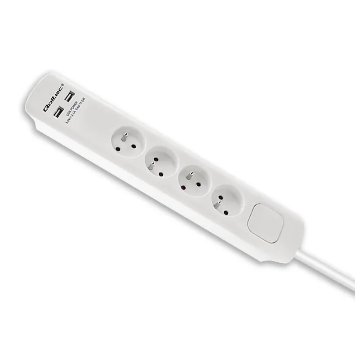 Qoltec Listwa antyprzepięciowa | 4 gniazda | 2xUSB | 1.8m | Biała