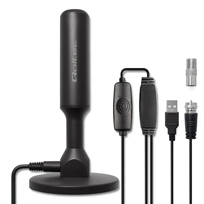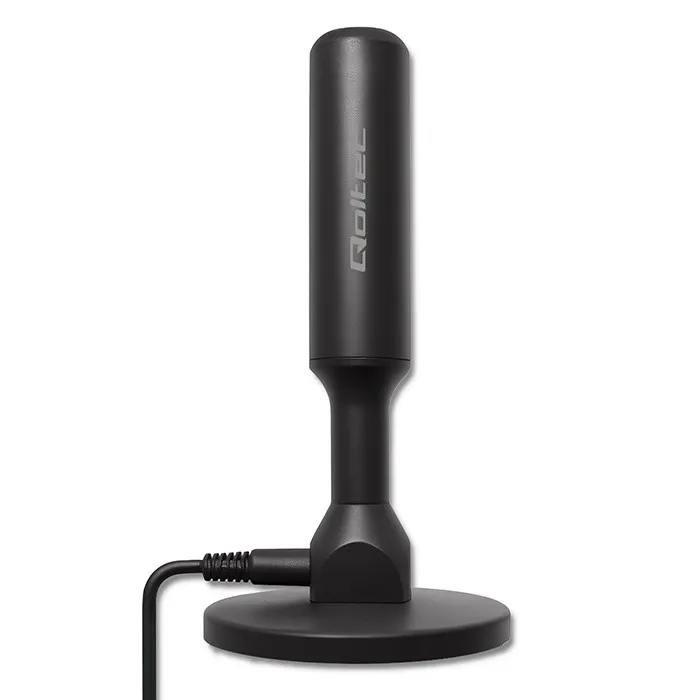 Qoltec Wewnętrzna Antena TV DVB-T2 ze wzmacniaczem sygnału i magnetyczną podstawą | 4K | 28dBi | 5m