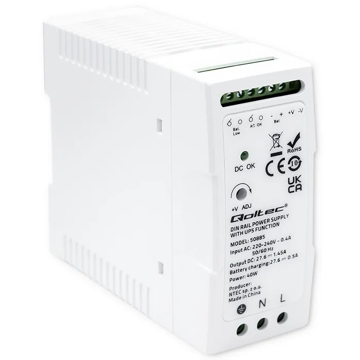 Qoltec Zasilacz na szynę DIN z funkcją UPS | 40W