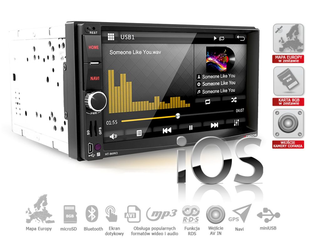 Radio samochodowe Vordon HT-869V2 BT, Navi, USB, SD