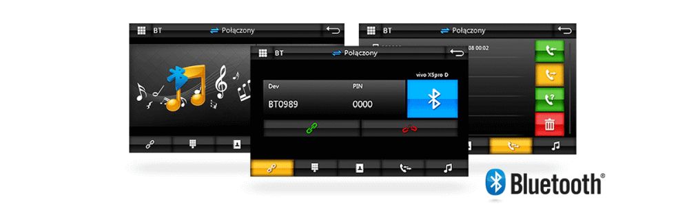 Radio posiada wbudowany Bluetooth, co pozwala na prowadzenie rozmów podczas jazdy samochodem. Dźwięk z telefonu będzie słyszany w głośnikach, natomiastzewnętrzny mikrofon dołączony do zestawu pozwoli na prowadzenie rozmowy bez odrywania rąk od kierownicy. Urządzenie synchronizuje książkę telefoniczną z telefonem, zapamiętuje historię połączeń, oraz posiada funkcję automatycznego odbierania połączeń. Po pierwszym sparowaniu smartfona, urządzenie automatycznie łączy się z telefonem. Protokół A2DP pozwala na bezprzewodowe odtwarzanie muzyki z telefonu.