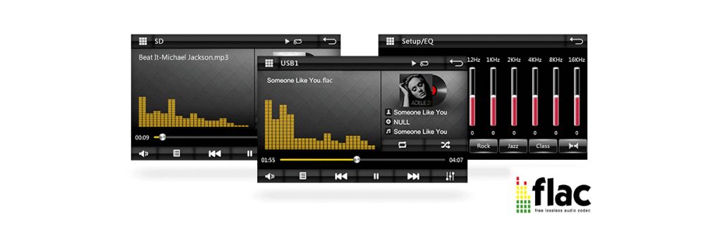 Urządzenie posiada zintegrowany odtwarzacz audio umożliwiający odtwarzanie muzyki np. z karty microSD oraz możliwość współpracowania z innymi urządzeniami przez połączenie Bluetooth. Urządzenie obsługuje m. in. MP3 / WMA / WAV / APE / AAC oraz FLAC, który jest kodekiem umożliwiającym bezstratną kompresję cyfrowego dźwięku. W przeciwieństwie do innych kodeków, nie usuwa żadnych danych ze strumienia audio, pozostawiając dźwięk wierny oryginałowi. 10-pasmowy korektor umożliwia dostosowanie brzmienia do własnych preferencji lub wybranie z predefiniowanych trybów Flat, Pop, Rock, Jazz, Klasyczny.