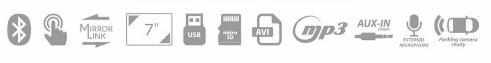 Radioodtwarzacz wyposażony jest w dotykowy wyświetlacz LCD o przekątnej 7” i rozdzielczości 800x480 pikseli, pełnowymiarowe gniazdo USB oraz microSD na przednim panelu. Radio posiada między innymi wejście na kamerę cofania. Aby zapewnić bezpieczeństwo podczas prowadzenia pojazdu, zamontowano moduł Bluetooth, który umożliwia prowadzenie rozmów bez konieczności odrywania rąk od kierownicy. Moduł obsługuje między innymi protokół A2DP, który pozwala na transmisję plików muzycznych z podłączonego smartfona.