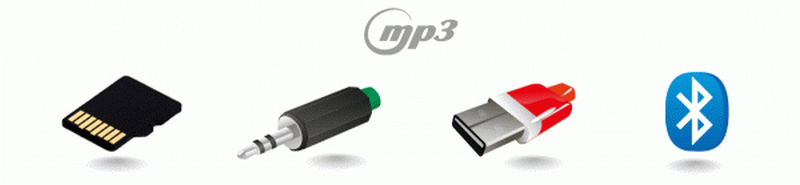 Urządzenie posiada zintegrowany odtwarzacz audio umożliwiający odtwarzanie muzyki z karty microSD, pendriva USB oraz współpracuje z innymi urządzeniami przez połączenie Bluetooth. Urządzenie obsługuje m. in. RMVB / FLV / AVI / MP3 / MP5 / MP4 / WMA.
