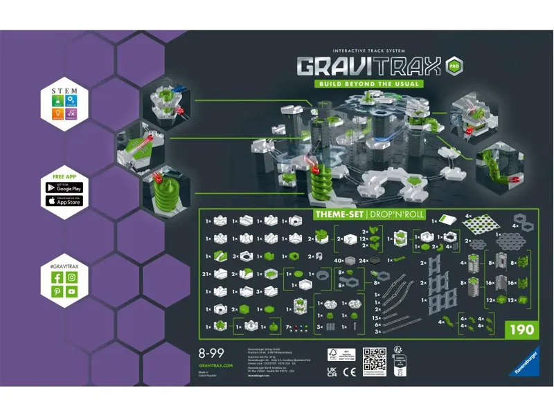 Dzięki zróżnicowanym elementom w zestawie GraviTrax Pro Drop'n'Roll, kulki na torze mogą osiągać różne poziomy i ciągle na nowo nabierać nowej prędkości. Urozmaicone elementy umożliwiają wielowymiarowe budowanie, w którym kreatywność i zabawa nie znają granic! Zestaw zawiera 189 różnych elementów, takich jak płytki bazowe, specjalne łuki, filary i ściany z linii Pro, ponadto różnorodne dodatki takie jak Pro rozdzielacz i karuzela oraz skoczek i spirala z linii podstawowej zapewnią godziny zabawy i nieskończone możliwości. Budowanie torów Gravitrax pobudza wyobraźnię, wznieca zainteresowanie nauką (fizyką, geometrią przestrzenną oraz grawitacją) oraz dostarcza zabawy na wiele godzin zarówno dorosłym jak i dzieciom.