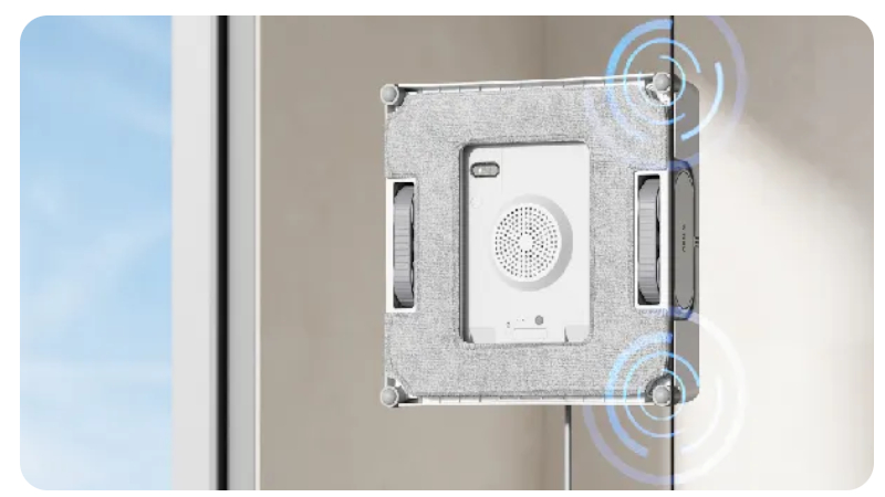 ECOVACS WINBOT W2 OMNI to połączenie inteligentnej technologii z pełnym bezpieczeństwem użytkowania. Dzięki mocy ssania 2800 Pa oraz zaawansowanemu systemowi antypoślizgowemu, robot pewnie trzyma się powierzchni, nawet gdy są one wyjątkowo gładkie. Urządzenie zachowuje stabilność nawet podczas przerw w dostawie prądu, a dodatkowe zabezpieczenie w postaci solidnej linki asekuracyjnej gwarantuje pełen spokój i bezpieczeństwo podczas pracy. Z WINBOT W2 OMNI Twoje okna są czyste, a Ty – spokojny.