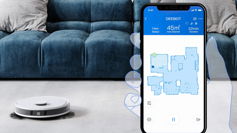 Razem z urządzeniem DEEBOT dostarczana jest automatycznie opróżniająca się stacja w eleganckim, perłowo-białym kolorze. Urządzeniem można sterować za pośrednictwem aplikacji ECOVACS Home. W zestawie znajdują się także jednorazowe worki o pojemności 2,5 l, które posiadają wykonany z naturalnych produktów oraz przyjazny dla środowiska uchwyt. Worek można w łatwy sposób włożyć do urządzenia i należy go wymieniać co 30 dni, aby cieszyć się autonomicznym oraz bezobsługowym czyszczeniem podłogi.