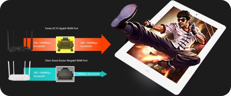 AC10 to router nowej generacji, który zapewnia dwuzakresowe, gigabitowe połączenia bezprzewodowe w standardzie 802.11ac. Procesor 1 GHz i 128 MB pamięci DDR3 gwarantują dużą wydajność w obu pasmach: 2,4 GHz (300 Mb/s) i 5 GHz (867 Mb/s). Router osiąga łączną przepustowość na poziomie 1167 Mb/s.
